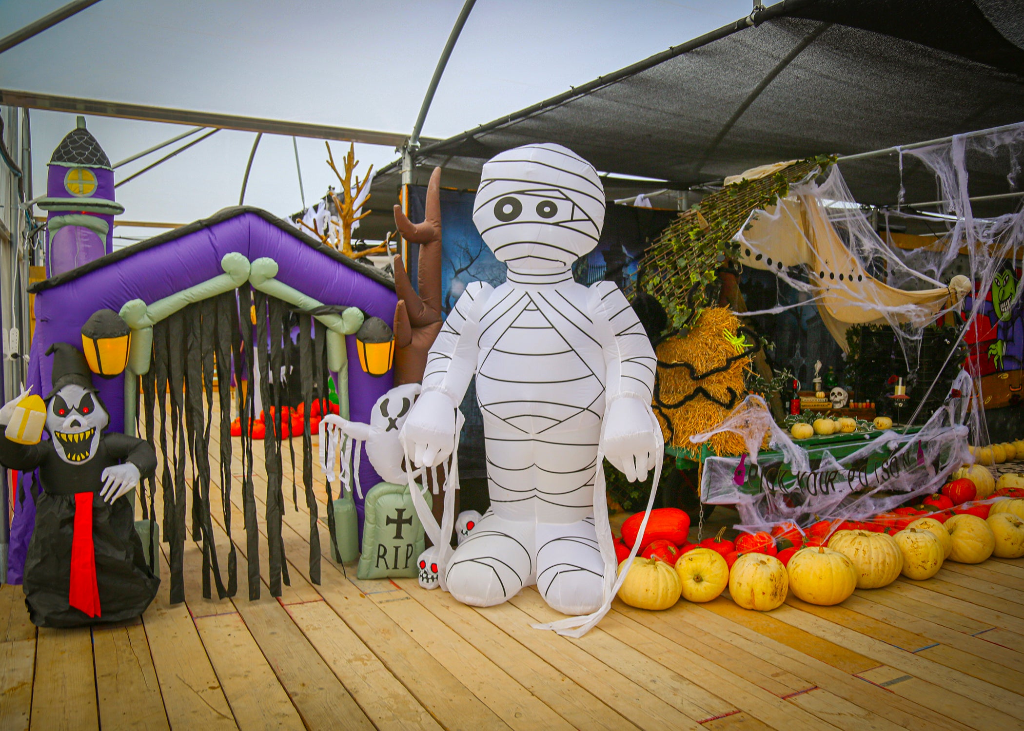 Our indoor Pumpkin Barn is home to iconic artwork, spooky photo stations, themed displays and a gift shop! NEW for 2025... Halloween VR Ride!